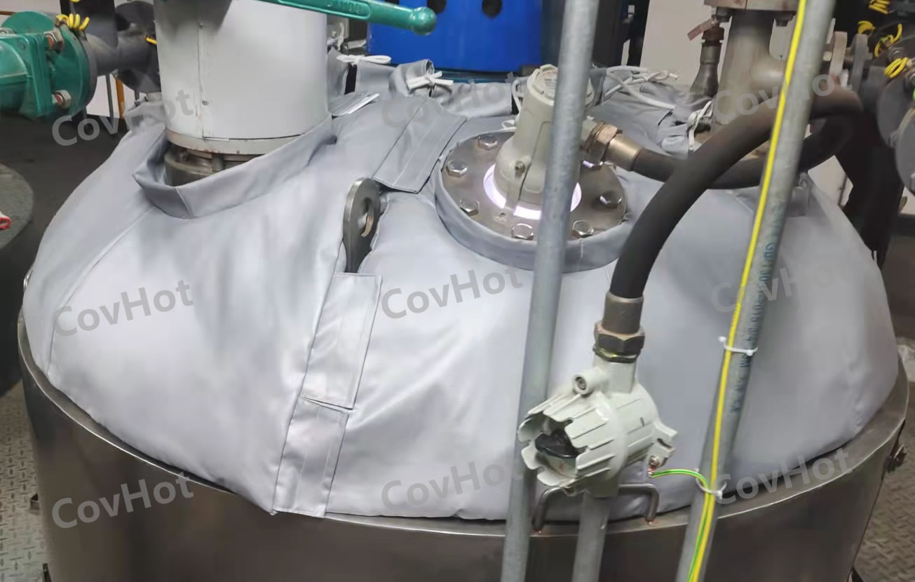 可拆卸柔性反應(yīng)釜保溫隔熱衣具有方便安裝和拆卸,節(jié)約工廠電能,降低經(jīng)濟(jì)成本,使用壽命長(zhǎng),產(chǎn)品經(jīng)久耐用的特點(diǎn)。能夠有效改善工作場(chǎng)所的熱環(huán)境,降低車間溫度。有效提高加工效率,避免等待加溫升溫時(shí)間,保護(hù)人員安全問(wèn)題,有效避免燙傷。Covhot柔性保溫套在制作時(shí)可以實(shí)現(xiàn)反應(yīng)釜保溫套的量身定制,根據(jù)設(shè)備的使用場(chǎng)景以及設(shè)備保溫需求制定最優(yōu)技術(shù)解決方案。