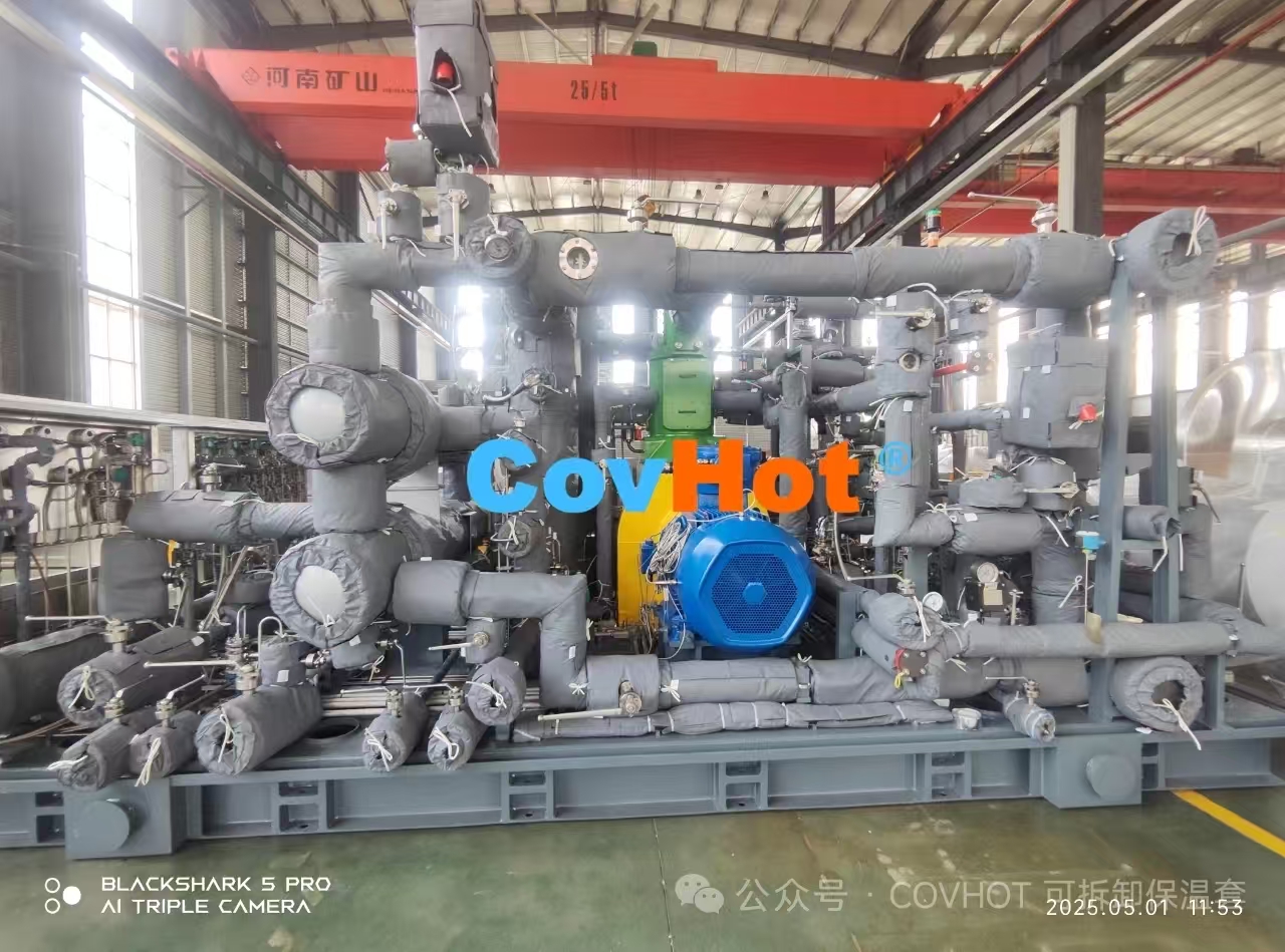 3.工業(yè)環(huán)境強適配:可拆卸保溫套可根據(jù)設(shè)備尺寸量身定制,針對一些安裝空間受限,異形復(fù)雜的設(shè)備,復(fù)雜的酸堿環(huán)境等,可根據(jù)其特殊情況進行具體分析制定解決方案,內(nèi)層保溫隔熱材料,外層防火耐溫材料均可選擇,可按需定制。