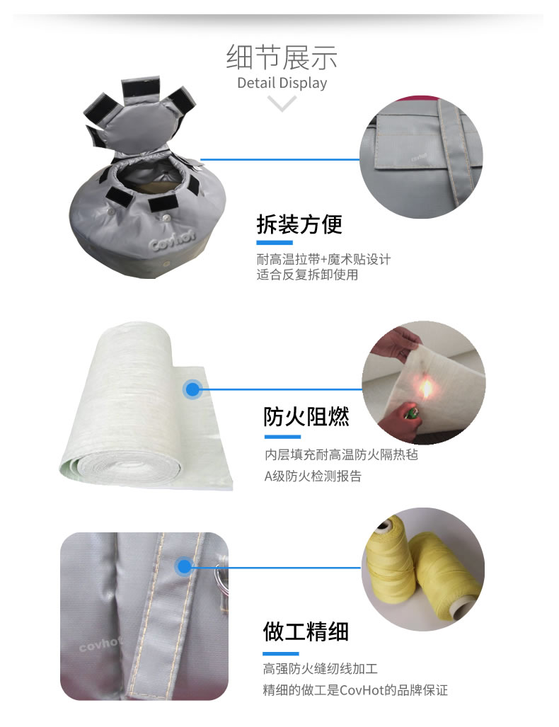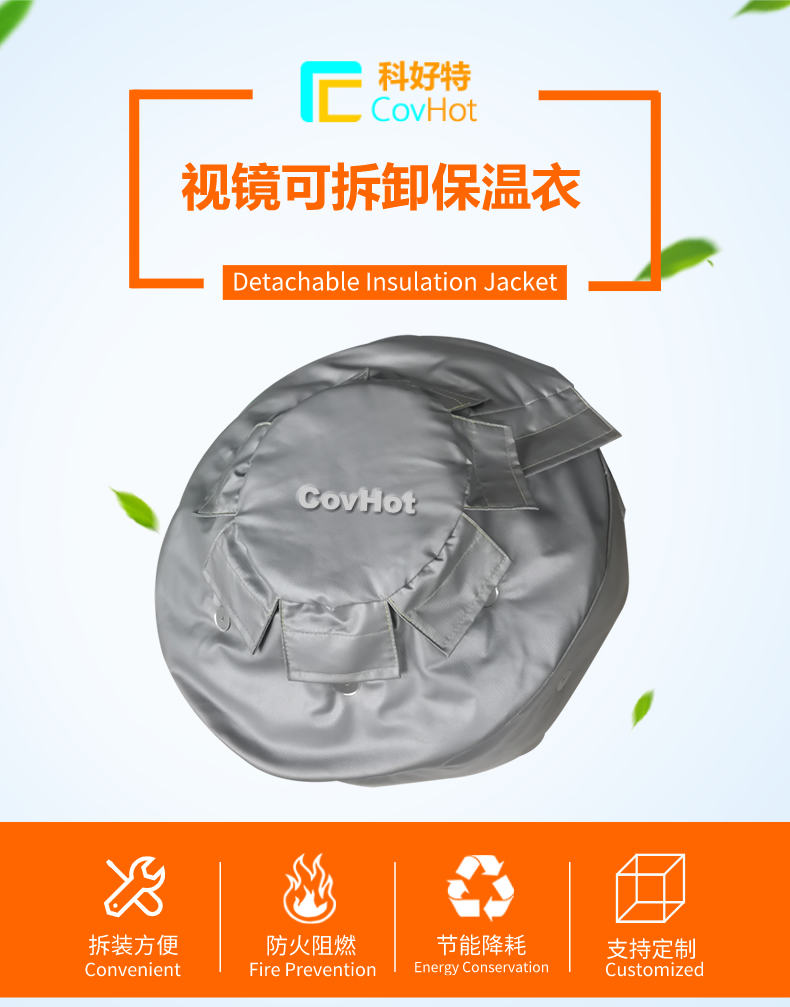 另外,視鏡保溫隔熱套,性能出眾,環(huán)境適應(yīng)性強,可以根據(jù)被保溫設(shè)備的使用環(huán)境,介質(zhì)溫度等條件選擇相應(yīng)的保溫材料,耐溫范圍廣,耐高溫可達1000℃以上,低溫環(huán)境下同樣不影響保溫套的使用性能。可拆卸保溫套具有良好的憎水性能,表面可擦洗,耐各種腐蝕性,特殊定制材料還可以在強酸強堿環(huán)境下正常工作。