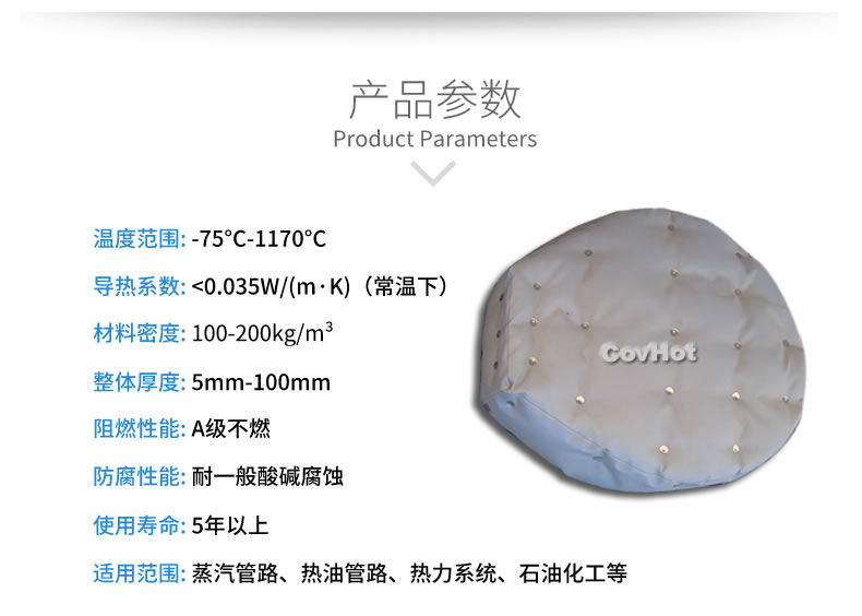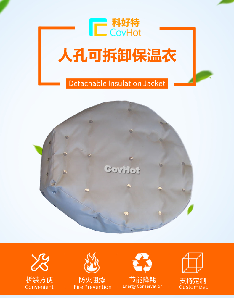 柔性可拆卸人孔保溫套采用柔軟的保溫材料設計,與人孔等設備緊密結合,根據人孔的形狀量身定制,產品外觀整潔,不含石棉及其他有害物質,幫助工廠改善工作熱環境,可以有效防止人員燙傷。