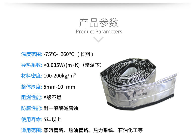 Covhot自粘式保溫帶產(chǎn)品作為方便拆卸的保溫隔熱產(chǎn)品,具有耐高溫、導(dǎo)熱系數(shù)低、耐酸堿、防火阻燃能力。